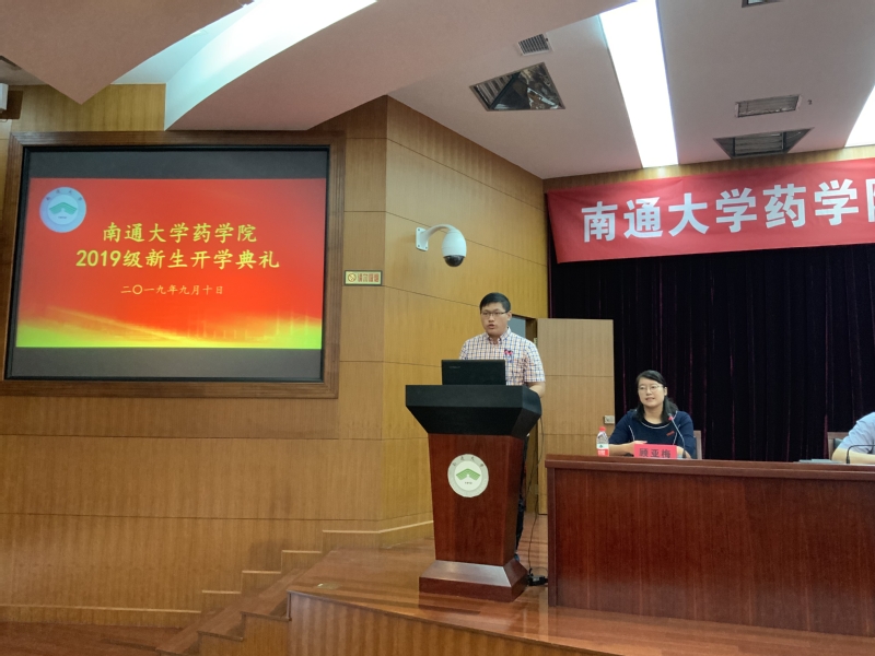 学院党委书记徐建从学院历史、师资概况、学科建设等方面介绍了学院的基本情况,并对新生提出殷切期望,一是要发扬通医精神,传承榜样力量。二是要不忘制药初心,恪守职业道德。三是要胸怀“药济天下”的责任与追求,要勤奋努力、学以致用、以用促学,未来自豪地向世界宣布“我就是药神!”