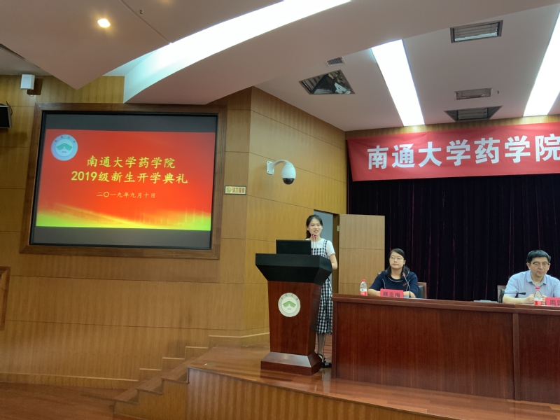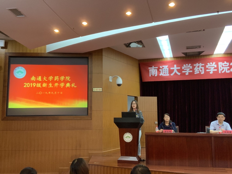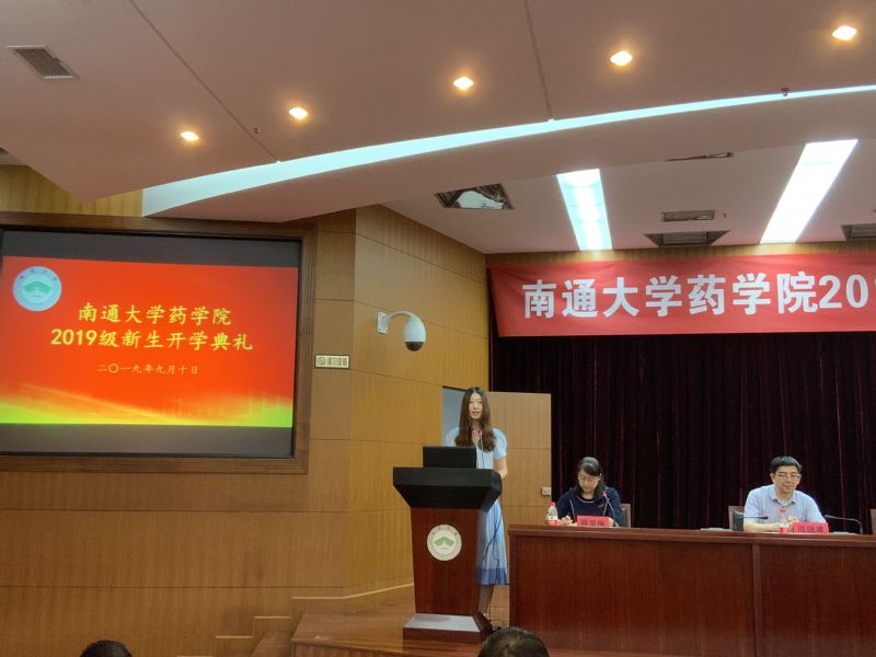学院学生会主席、药学172班端木嘉欣向新同学表示欢迎,她用韩愈的“业精于勤荒于嬉”,告诫大家珍惜时光,勤勉不缀。