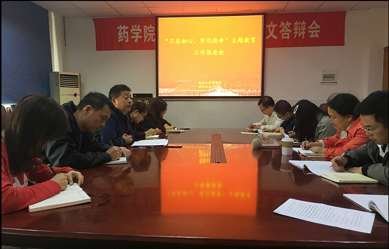 学院党委书记徐建总结了前一阶段时期学院“不忘初心、牢记使命”主题教育的开展情况,对学院下一阶段开展主题教育做出具体部署,并对各党支部今后工作提出三点要求:一要继续抓好理论学习,每个党员在学原文学原著的过程中,要做到阅读批注加深理解;二要组织学习赵亚夫、王继才先进楷模事迹;三要以各种形式开展“初心是什么,使命干什么,奋斗比什么”专题研讨会,开展党员“四重四亮”活动。他要求学院党政领导班子成员,深入教学科研一线、深入学生,开展调研、对标找差,及时发现问题、认真整改落实,在学院药学博士点培育申报和2020年国家项目申报等工作中起带头模范作用,切实推进学校和学院各项事业发展。