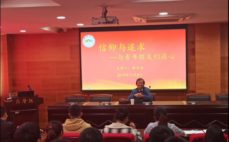 11月8日,我院举办第一期发展对象培训班暨第四期入党积极分子培训班第二次专题学习,学院关心下一代委员会副主任徐济良以“信仰与追求——与青年朋友们谈心”为主题,为党训班学员上了一堂生动的党课。