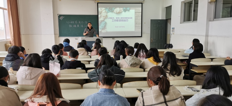 为进一步贯彻全国全省高校思想政治工作会议和教育会议精神,全面落实教育部 “心理育人质量提升工程计划”,全面贯彻落实3044永利心理健康教育服务中心的工作计划和要求,11月27日中午,3044永利心协分会特邀国家二级心理咨询师、3044永利兼职心理咨询师施玮老师在启秀校区A406教室给2019级班级心理委员、宿舍心理信息联络员进行培训,2019级辅导员李丽主持。