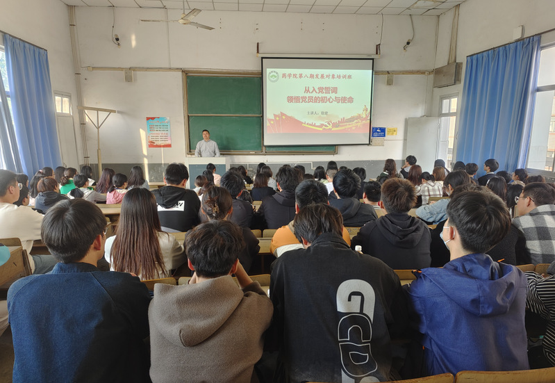 培训班上,学院党委书记徐建进行开班动员,并做《从入党誓词领悟党员的初心和使命》专题报告,带领大家学习土地革命战争时期、抗日战争时期、解放战争时期、新中国成立初期到党的十二大以后的入党誓词的变化。徐建强调,建党以来新党员一般都要面对党旗,宣读入党誓词。这意味着一种身份的转变、责任的承担和忠诚的承诺,意味着以后的人生将具有更加坚定的理想和信念。希望学员们从入党誓词中领悟中国共产党人的初心和使命,在坚定理想信念中铸牢忠诚,在学习实践创新理论中锤炼忠诚,在精通业务履职尽责中检验忠诚。