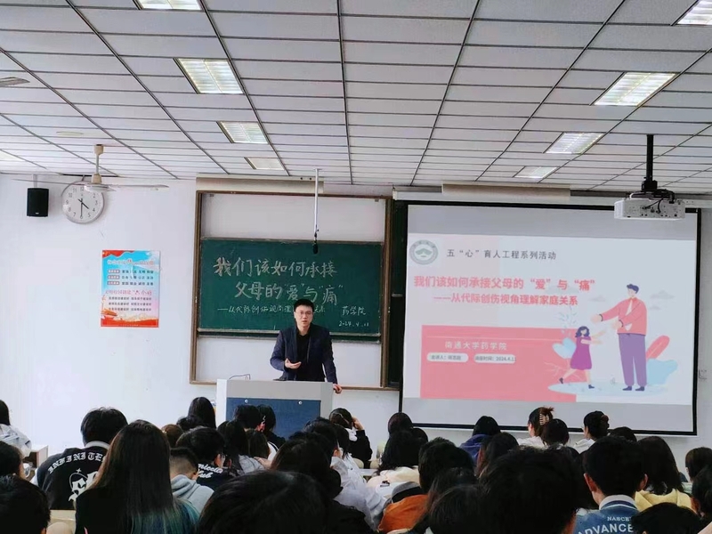 蒋志超老师以“我们该如何承接父母的‘爱’与‘痛’——从代际创伤视角理解家庭关系”为题,从“五个猴子与香蕉”的社会学实验引入,向2022级的同学们讲解什么是代际关系、代际创伤,提出如果代际关系影响无法避免,同学们可以尝试在稳定自身情绪的前提下和父母沟通交流,并予以理解和包容。
