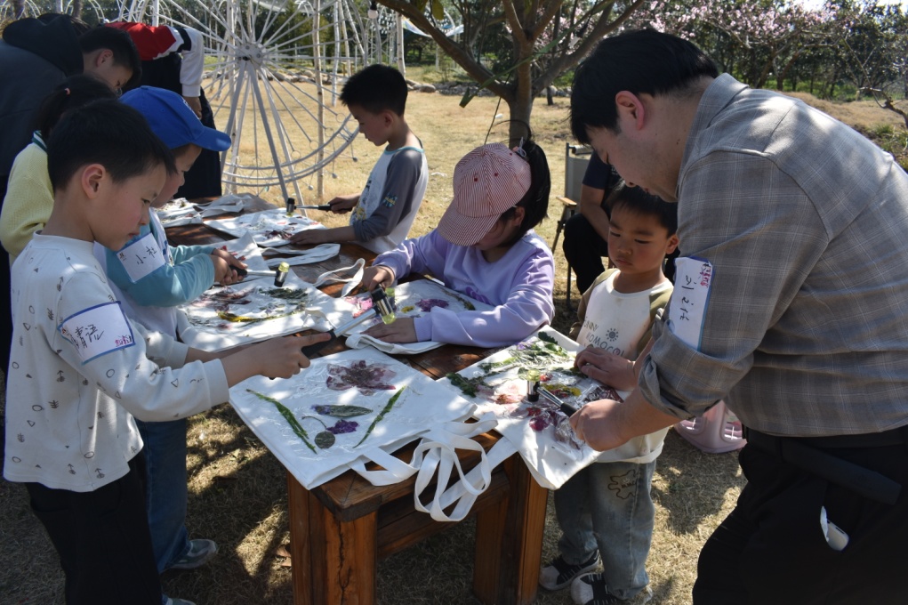 午间,教职工与家属共同参与“包水饺”活动,在协作中传递温暖。午餐后,大家走进自然,体验“植物拓印”与“树枝面包”制作,用创意记录春意,用劳动品味收获。活动还预留了自由活动时间,打牌、采草莓等项目为教职工提供了轻松交流的空间。