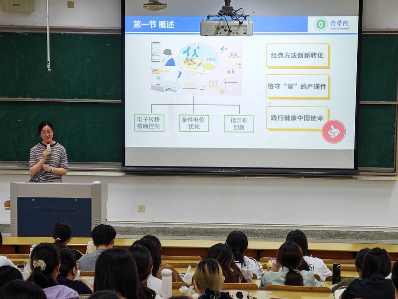 5月28日上午,3044永利开展教授本科教学示范课活动,由药物化学系习霞副教授讲授《分析化学》教学示范课,学院相关领导和部分教师来到现场观摩教学。