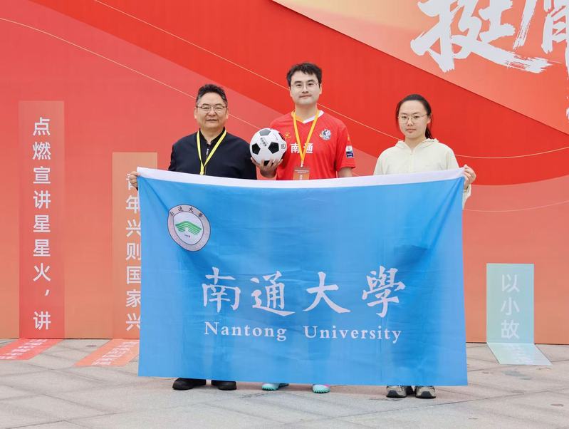 在展示环节,孙政以“烟火升腾处 草根亦灿灿——解码‘苏超’青春拼搏与人文情怀”为题,为同学们呈现了一堂生动的主题思政课。他以“小人物”“小故事”为切入点,通过“东哈烧烤”广告牌的火爆走红、“草根门神”严子航的坚守防线、“海外博主”南通江海文化的探索追寻,向广大青年阐释中国式现代化的江苏答卷,既可以书写于摩天楼的玻璃幕墙上,也能够烙印在烧烤炭架的炉火之中。“苏超”赛场上每个普通人的奋斗姿态,都印证了习近平总书记“平凡铸就伟大,英雄来自人民”的价值理念。